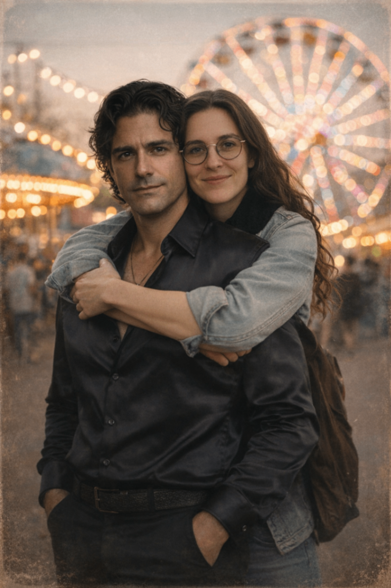 Se acercó al cuadro para levantarlo y al darlo vuelta vio una foto de un joven Renzo junto a una joven mujer de tez muy clara, contextura liviana, de unos 50 kilos, ojos color miel almendrados enmarcados con unos lentes de marco fino y sonrisa cálida posando abrazada a un Renzo muy distinto al de ahora.