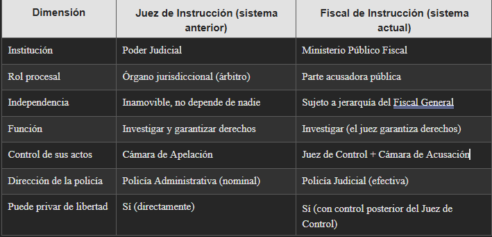 Experiencia de Córdoba: Córdoba tomó la decisión contraria: sacar la instrucción al juez directamente. Pero también creó el Juez de Control como árbitro jurisdiccional de garantías, separado del fiscal.