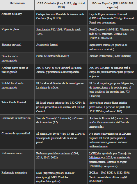 Tabla comparativa final: CPP Córdoba vs. LECrim España