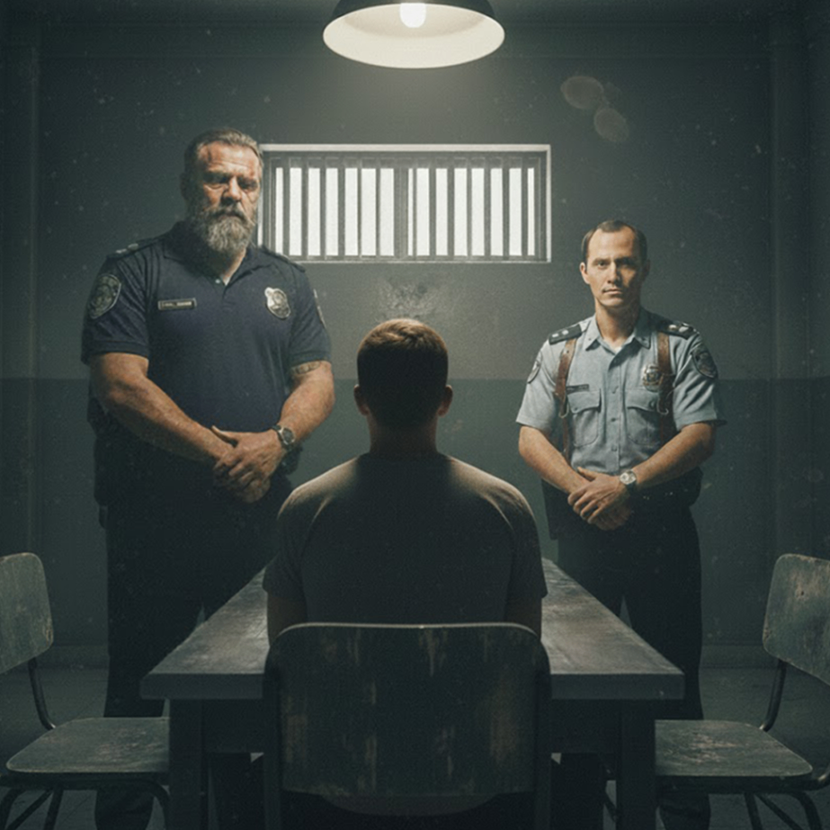 Atravesamos la pared llena de huellas de zapatillas -porque la gente parece ser alérgica a sentarse en los bancos- y nos encontramos de un lado a Alfy: sin chat, sin sus padres, sin aire acondicionado y sin abogado. Del otro lado de la mesa, dos oficiales curtidos que han visto de todo. Bueno, TODO, excepto un streamer de 19 años que irrumpe ilegalmente en la casa de su ídolo, se mete a la pileta y acto seguido se cuela en la casa y descubre un espejo roto con sangre, marcas de arrastre y un cuarto secreto detrás de un espejo al mejor estilo survival horror.