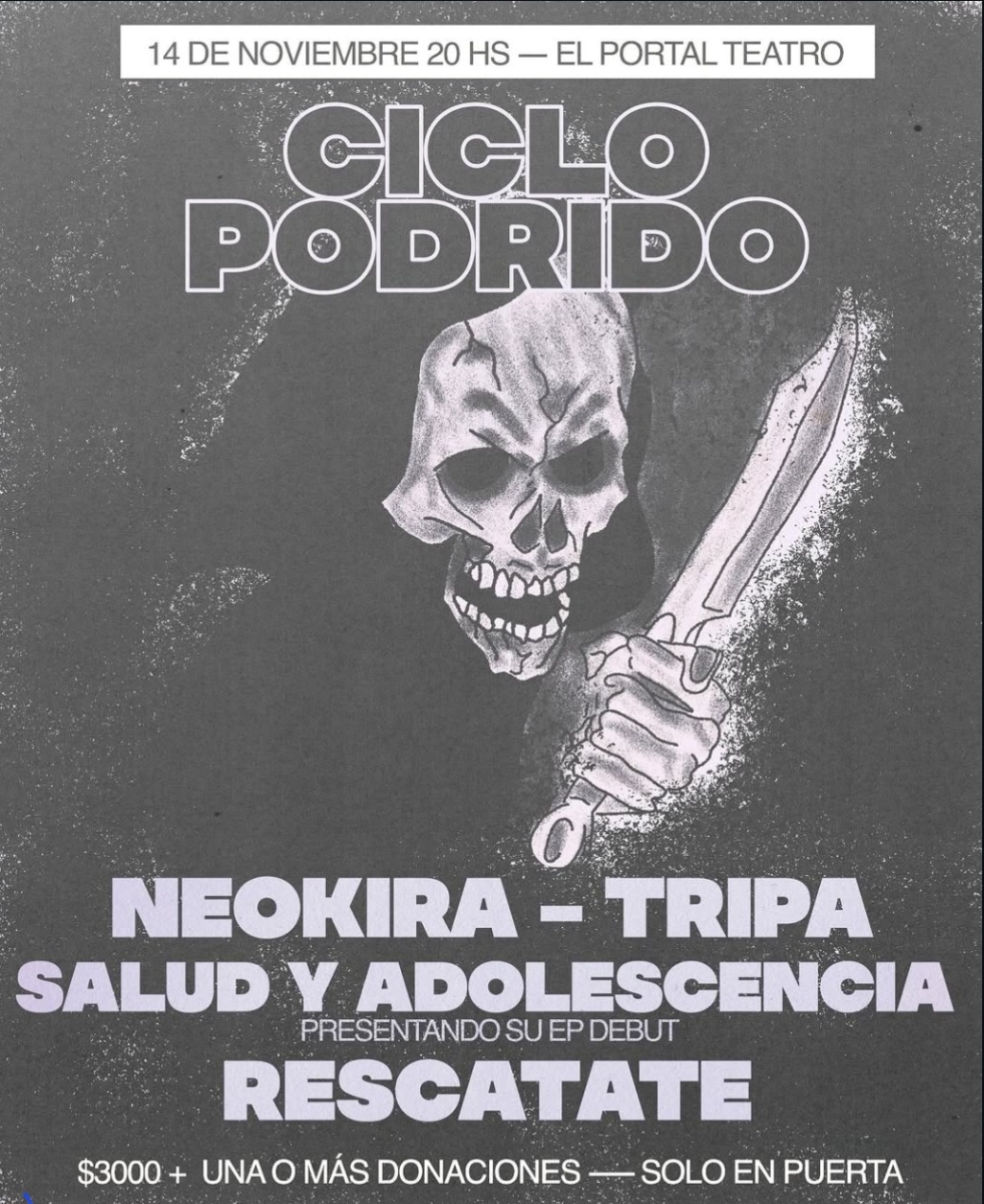 Este es un encuentro del submundo del heavy, el death metal, el punk, el hardcore y cualquier cosa proveniente del fondo abisal. Este catorce de noviembre actuaron allí como parte del ciclo las bandas Neokira, Tripa, Rescatate y Salud y Adolescencia, que abrieron la fecha presentando su EP titulado S/T y con quienes charlé. También son SADO en siglas.