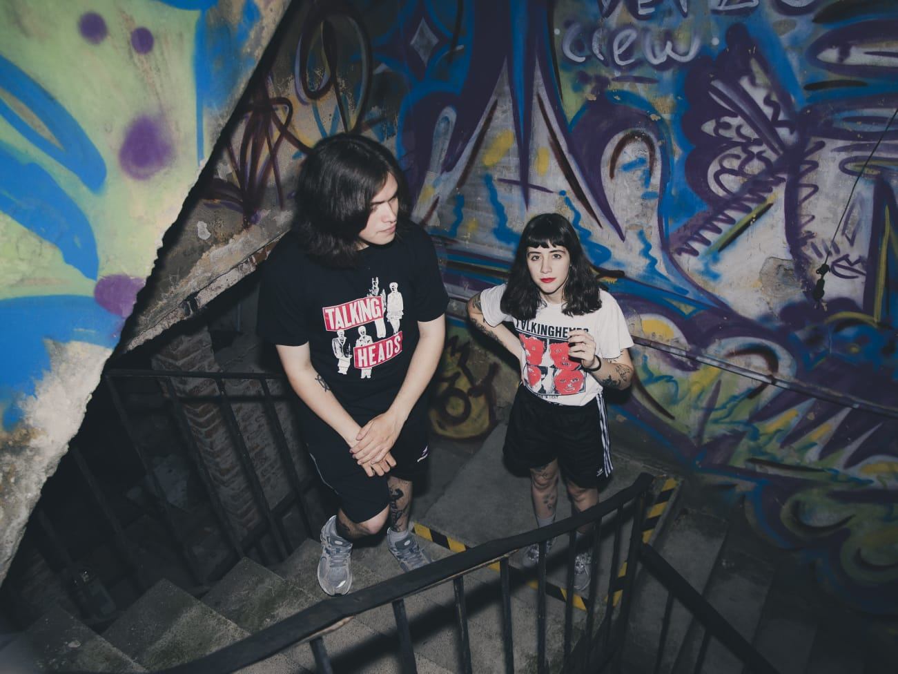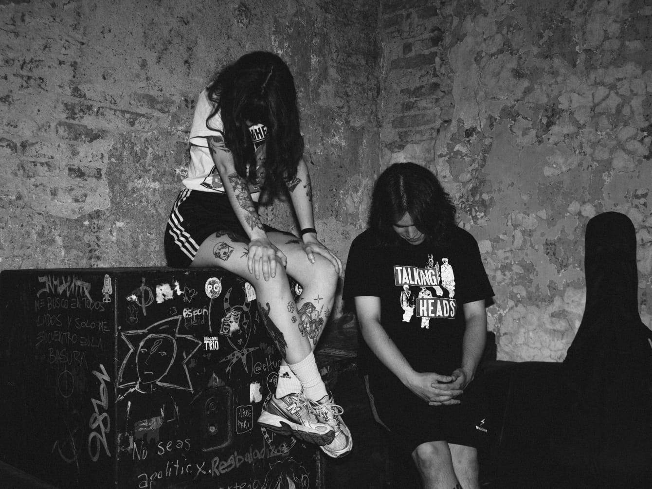 Con mi amiga y fotógrafa Agustina nos encontramos esa tarde sobre la vereda de El Portal, horas antes del inicio del Ciclo Podrido, y ahí afuera yo veo a un chico de pelo hasta los hombros que se apoya a un costado nuestro y contra la pared. Es Tomi, guitarrista y gritos, me doy cuenta en cuanto aparece, lo llamo para presentarme en persona y, al abrirse la puerta con Aluminé, batería y gritos, llevando las llaves en la mano, él y ella se ríen, chocan los cinco y se declaran unos idiotas porque, claro, ambos decidieron traer puestas sus camisetas de Talking Heads, como dos gemelos malditos por la fuerza del post punk y conectados por telepatía.